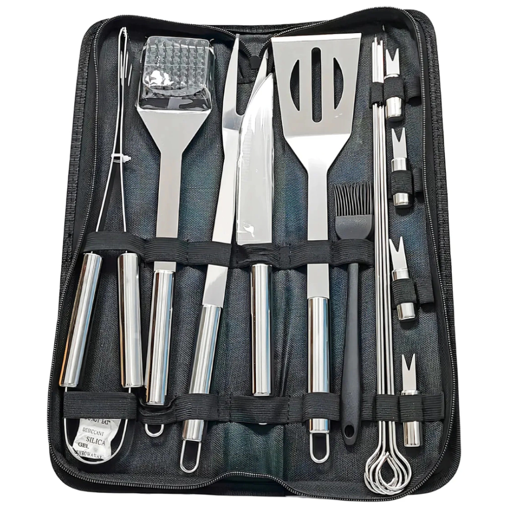| ¡Vive la mejor experiencia de asado con el Set de Barbacoa INDE24-019! Este completo kit de 15 piezas de acero inoxidable te ofrece todo lo que necesitas para preparar tus parrilladas como un profesional. Incluye espátula, pinzas, cuchillo, cepillo, brochetas y más, todo dentro de un estuche portátil que mantiene tus utensilios organizados y listos para usar. Perfecto para camping, reuniones familiares o fines de semana de BBQ. ¡Calidad, estilo y funcionalidad en un solo set! |